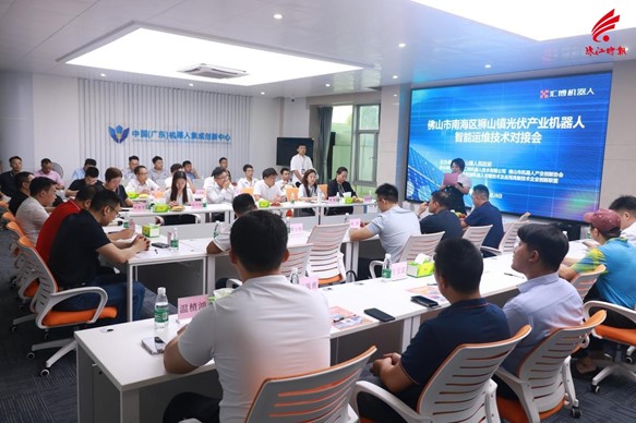 當(dāng)天獅山舉辦的對接會對當(dāng)前運維市場上存在的痛點問題,如數(shù)據(jù)采集不全面、監(jiān)控系統(tǒng)功能單一、運維嚴重依賴、系統(tǒng)智能化水平低等提供解決方案。其中,廣東匯博機器人提出的基于智能機器人的多維度“水—陸—空協(xié)同”光伏電站智能運維解決方案得到了與會企業(yè)的高度關(guān)注。