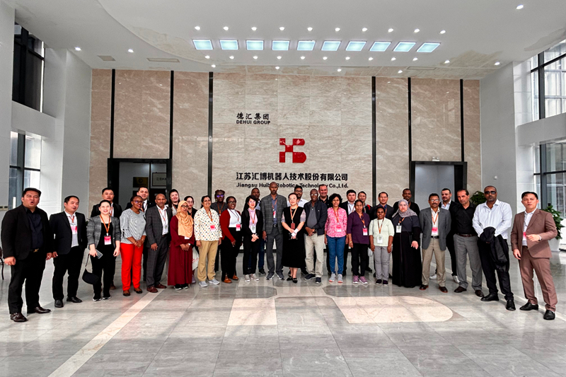 隨著經(jīng)濟全球化的深入發(fā)展,共建“一帶一路”倡議逐漸成為全球合作與共贏的重要平臺。10月17日,中國商務(wù)部組織老撾、斯里蘭卡、埃塞俄比亞、烏茲別克斯坦等“一帶一路”沿線8個國家的37位政府官員、專家學(xué)者以及工貿(mào)部等相關(guān)機構(gòu)負責(zé)人到匯博機器人蘇州總部參觀考察。匯博機器人集團高管熱情接待并參加座談。