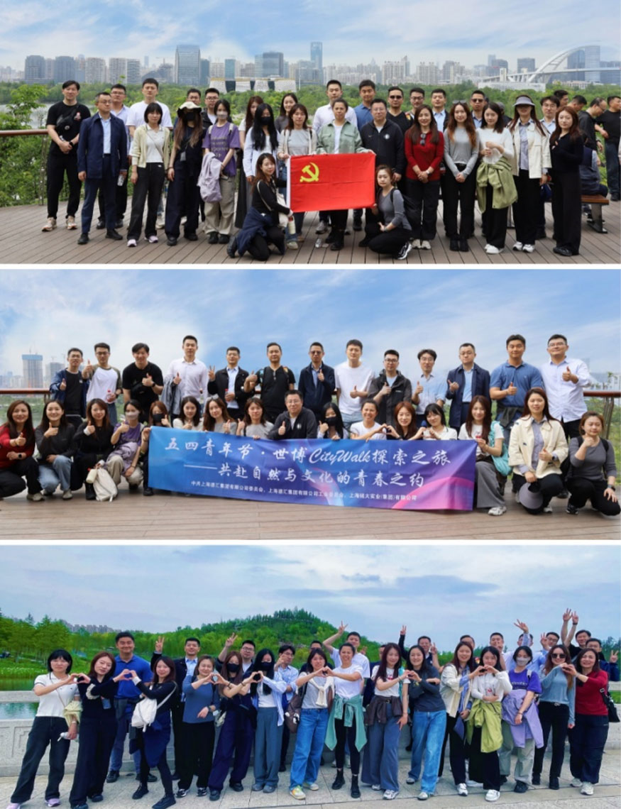 為踐行“懂生活,更慧工作”理念,充分激發廣大青年的創新活力,鼓勵員工勇于探索、敢于實踐,4月27日下午,在集團黨委領導下,工會精心策劃了一場別開生面的共迎“五四” 青年節CityWalk主題活動,由集團公司黨委和工會領導帶隊,德匯集團、銘大集團青年黨員和員工參加其中。在世博文化公園里,大家以腳步丈量生態與人文之美,共同度過了一個充滿活力、有意義的下午。