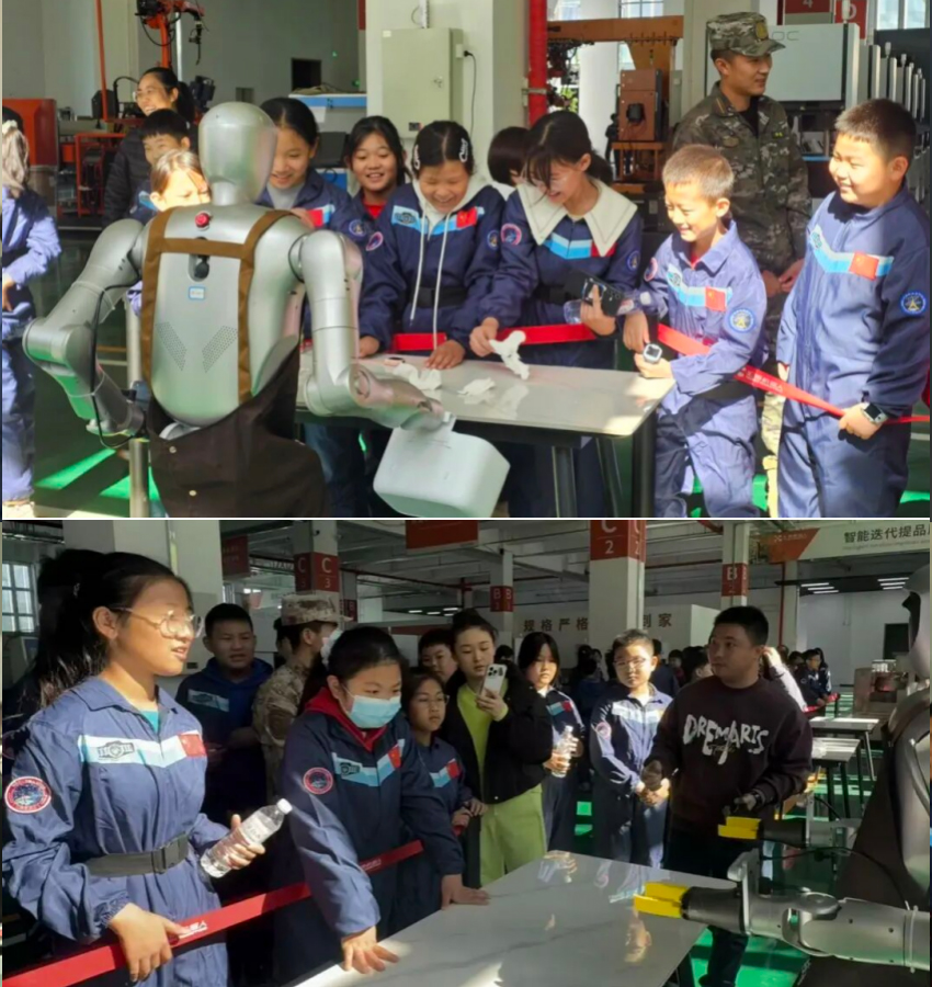 在技術(shù)體驗環(huán)節(jié),學(xué)生們現(xiàn)場觀摩匯博具身智能機(jī)器人演示抓取、運送物品以及清理桌面等生活化場景,在教師指導(dǎo)下觀察機(jī)器人運作細(xì)節(jié),主動提問交流,在互動中進(jìn)一步明晰機(jī)器人技術(shù)在工業(yè)生產(chǎn)、日常生活等領(lǐng)域的應(yīng)用邊界,深化對“科技服務(wù)生活”的理解。