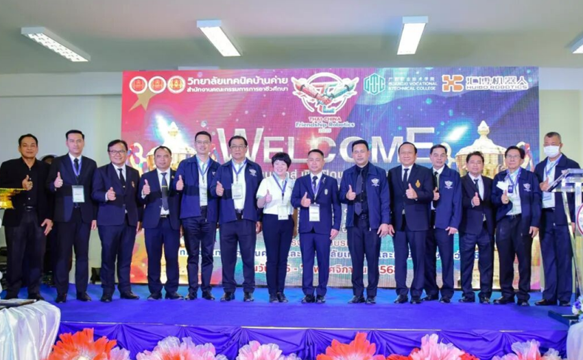 泰國職業教育委員會、東部職業教育學院、邦楷技術學院,廣西職業技術學院,匯博機器人相關領導、指導老師及參賽選手等出席開幕式。競賽在泰國邦楷技術學院“中國-泰國智造現代工匠學院”舉行。
