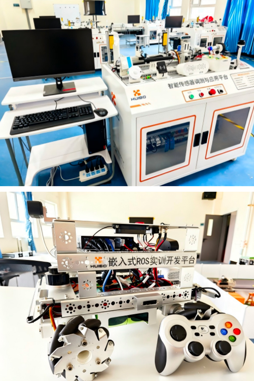 匯博機器人依托自主研發的智能傳感器調測與應用平臺、人工智能基礎實訓系統、具身智能機器人開發平臺等教學設備,與學校共同設計課程體系,以“企業真題+項目式教學”為核心,課程內容對標行業最新需求,讓學生全程參與項目需求分析、方案設計、落地實踐的全流程。