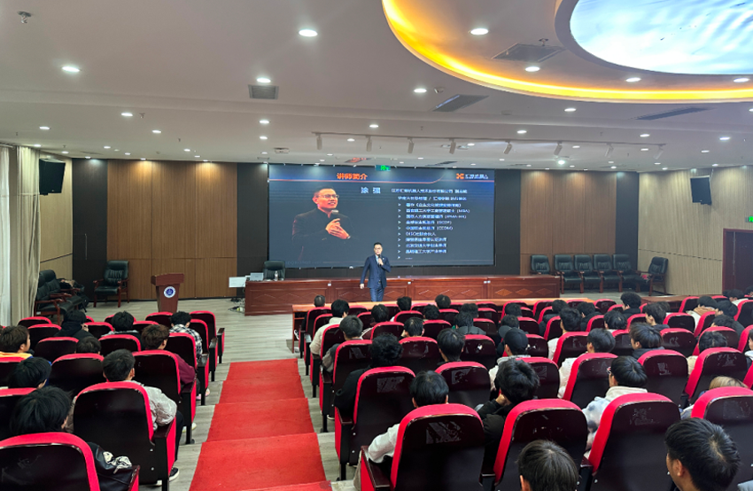 講座中,匯博機器人副總裁涂強結合匯博機器人在人工智能、智能制造等領域的產業實踐與自身豐富的職業經歷,采取生動的案例分析和互動問答形式,從就業形勢研判、人才需求解析、能力提升路徑等維度展開分享,將智能制造行業發展趨勢轉化為生動的育人資源。