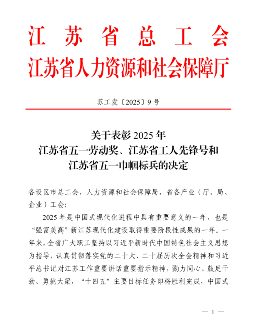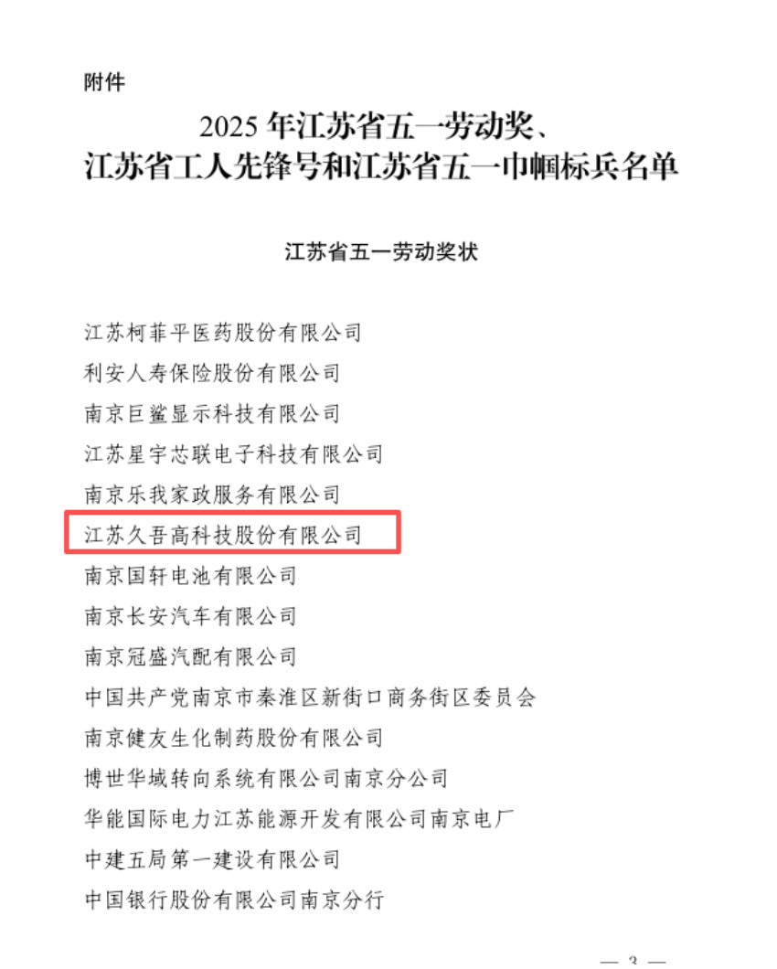 近日,江蘇省總工會正式公布2025年江蘇省五一勞動獎表彰名單,久吾高科憑借在科技創新、產業引領、人才培育和社會責任等方面的卓越表現,榮獲"江蘇省五一勞動獎狀"。這一殊榮是對久吾高科全體員工辛勤付出的高度認可,更是對企業深耕實業、勇毅創新的充分肯定。